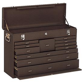Kennedy 26" 11-Drawer Machinists Chest - Brown Kennedy 11-Drawer Machinist Tool Chest offers high quality and durability that's been handed down by generations of American craftsmen. Drawers and top-till feature wool felt lining. Drawers include adjustable, zinc-coated steel drawer dividers for organized storage. Spring clips in drawers hold contents in place. Tubular lock secures all drawers. 26-3/4" wide. Brown powder coat finish. 27.00 L. 19.00 W. 9.00 H.